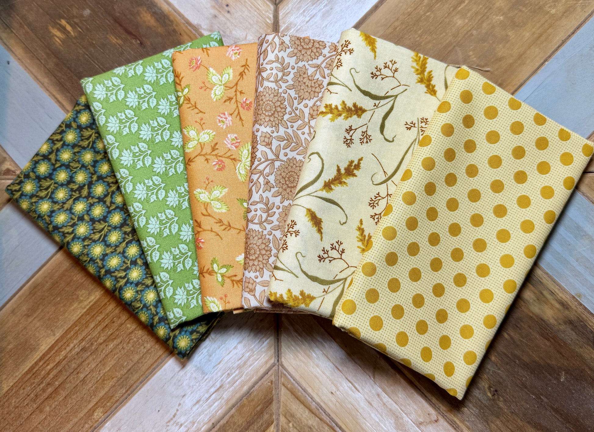 A "bespoke bundle" of hand-selected premium cotton quilting fabric prints. The bundle contains six fat quarter squares, each piece about 18" x 22".